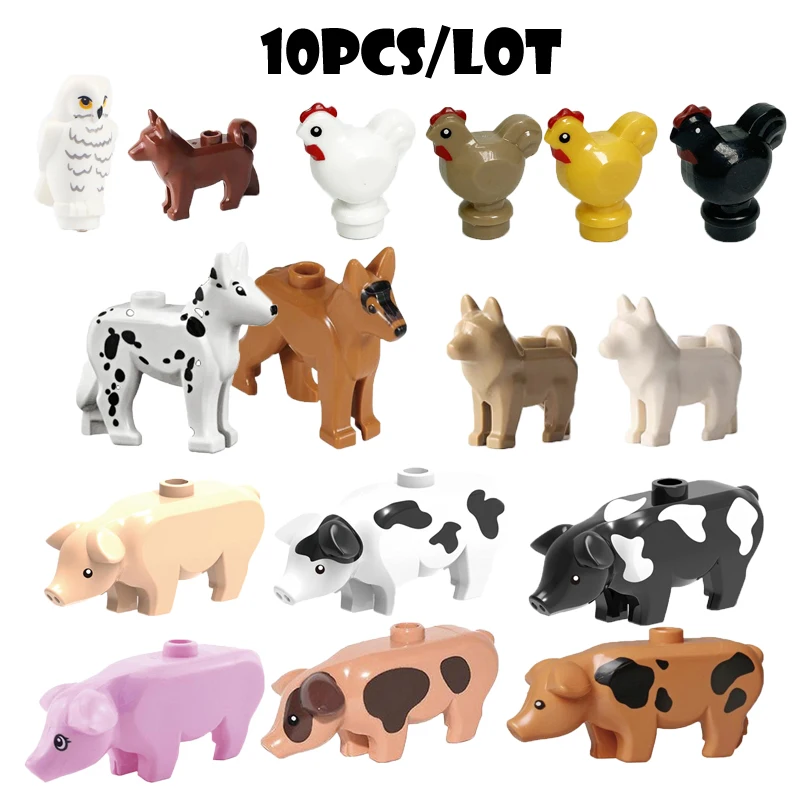 10 шт.лот, медведь, маленькая ферма, животные, курица, собака, свинья, утка, сова, строительные блоки, игрушки, аксессуары, милый Юрский период, подарок для детей