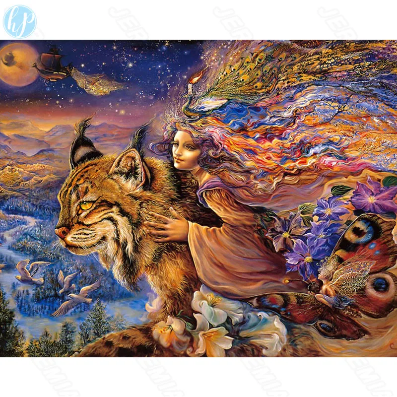 Алмазная живопись с персонажами, красота с дикой кошкой, круговое сверло, квадратная алмазная живопись, вышивка крестиком, Современное украшение для молодежной спальни icon star icon star icon star icon star icon star