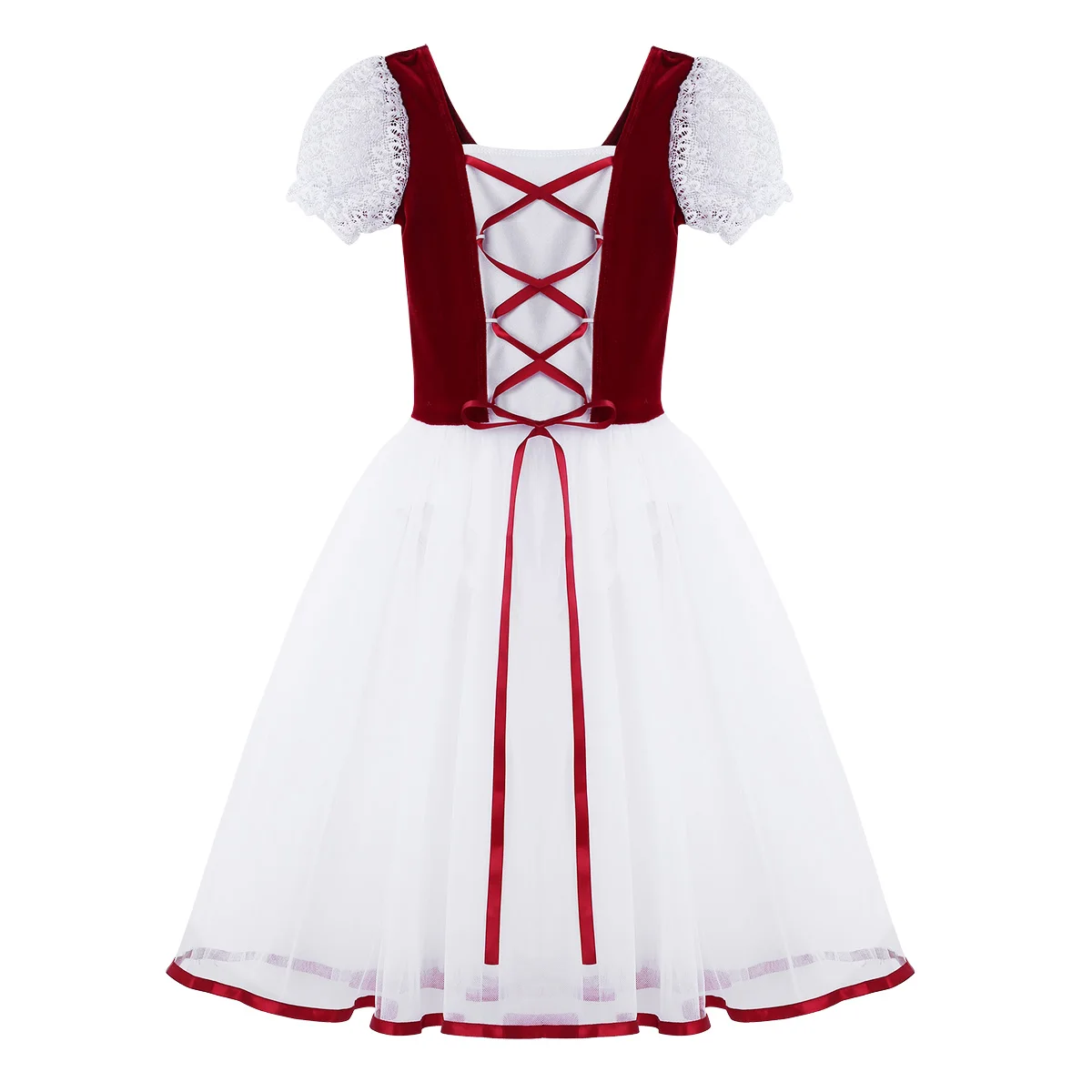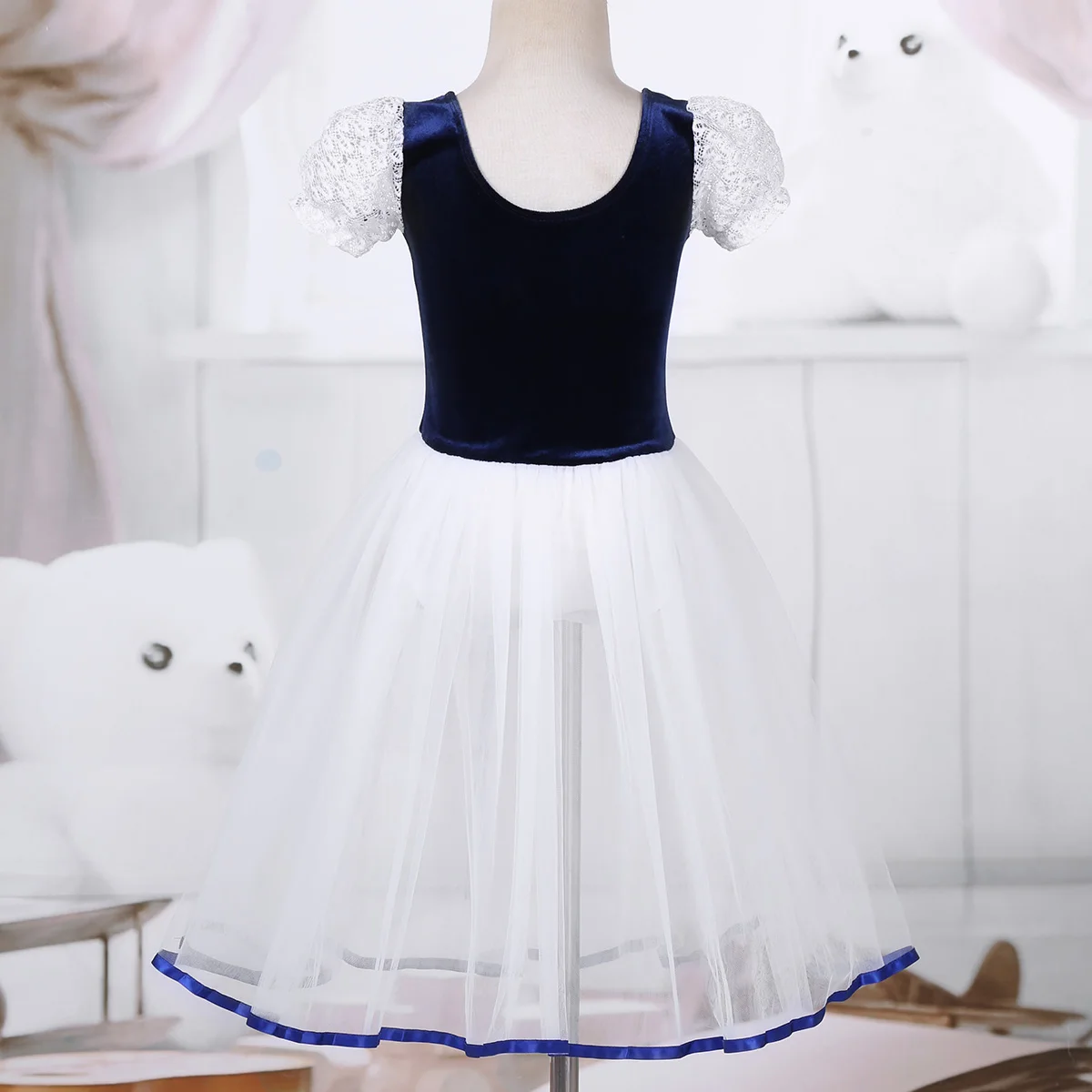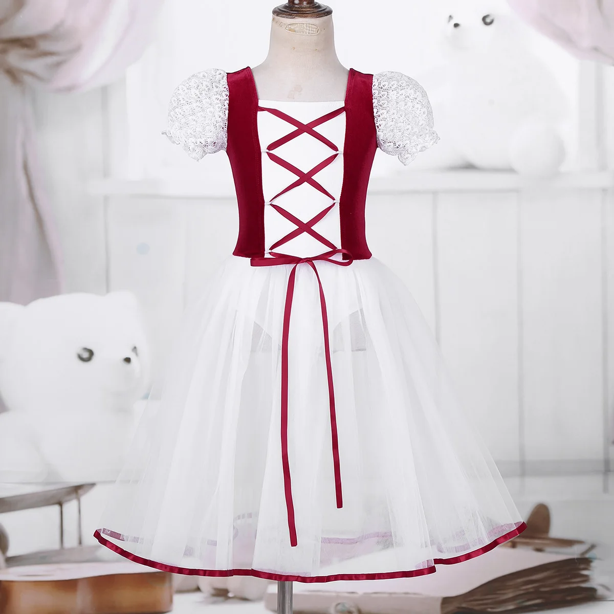 Балетные костюмы для девочек, романтичная пачка, Жизель, бархат, тюль, платье для катания на коньках, балерина, с коротким рукавом, на шнуровке, летнее платье