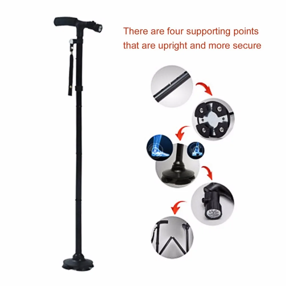 Волшебный тростник, складной светодиодный светильник, безопасная трость, 4 головки, поворотная, Trusty Base для пожилых людей, Треккинговая трость на руль