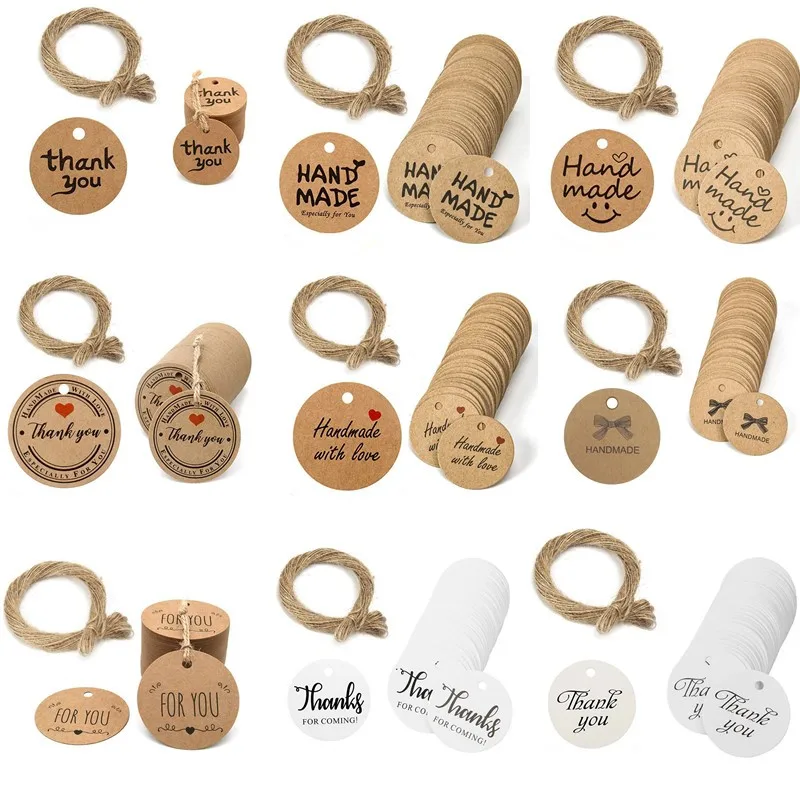 Бирки ручной работы с надписью Thank You with Love fu You, 100 шт.