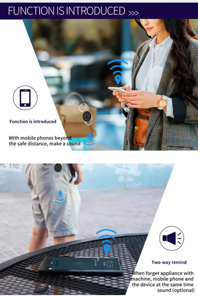 Двусторонняя сигнализация-когда ваш мобильный телефон подключен к устройству против потери, если вы только принести ваш мобильный телефон, когда вы выходите, и оставить устройство против потери около 30 метров, мобильный телефон и брелок предупредят вас.