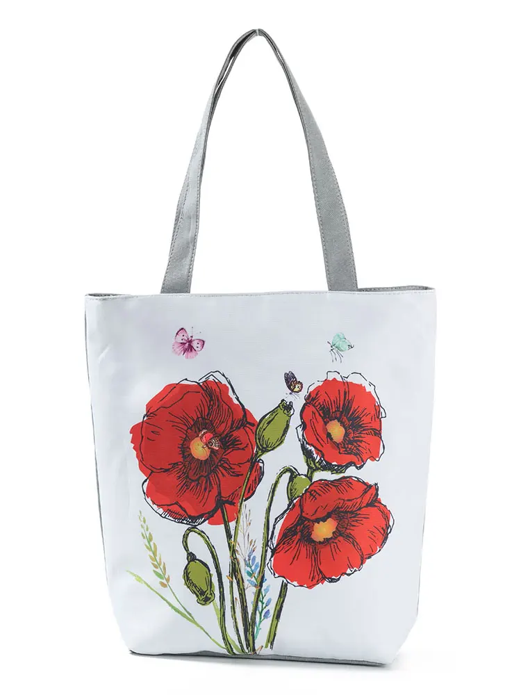 Сумка женская многоразовая, из экокожи, с цветочным принтом