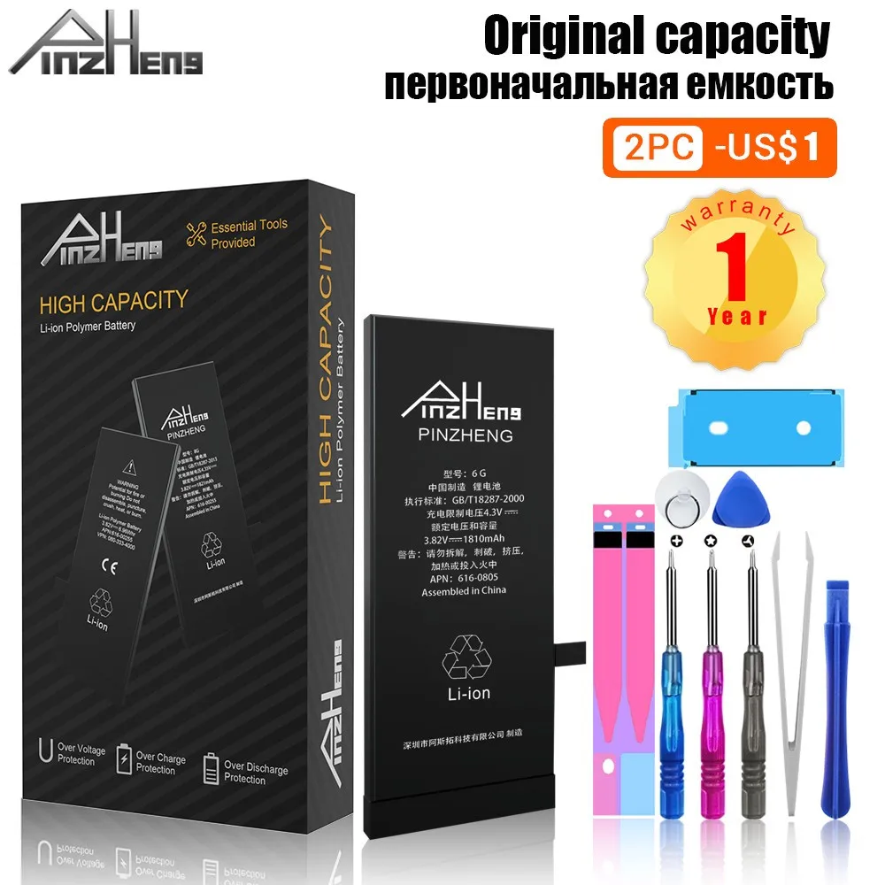 Аккумулятор PINZHENG для iPhone 6, 6S, 7, 8 Plus, X, XR, Xs Max, 5, 5S, SE, 11 Pro Max