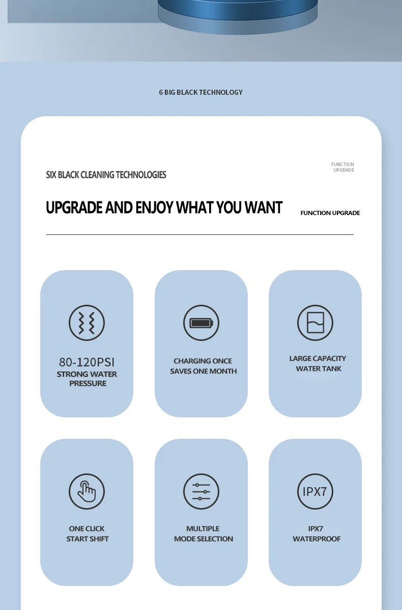 Зубная вода Флоссер может удалять зубной налет и мусор между зубами и ниже линии гамлайн для глубокой и тщательной очистки.