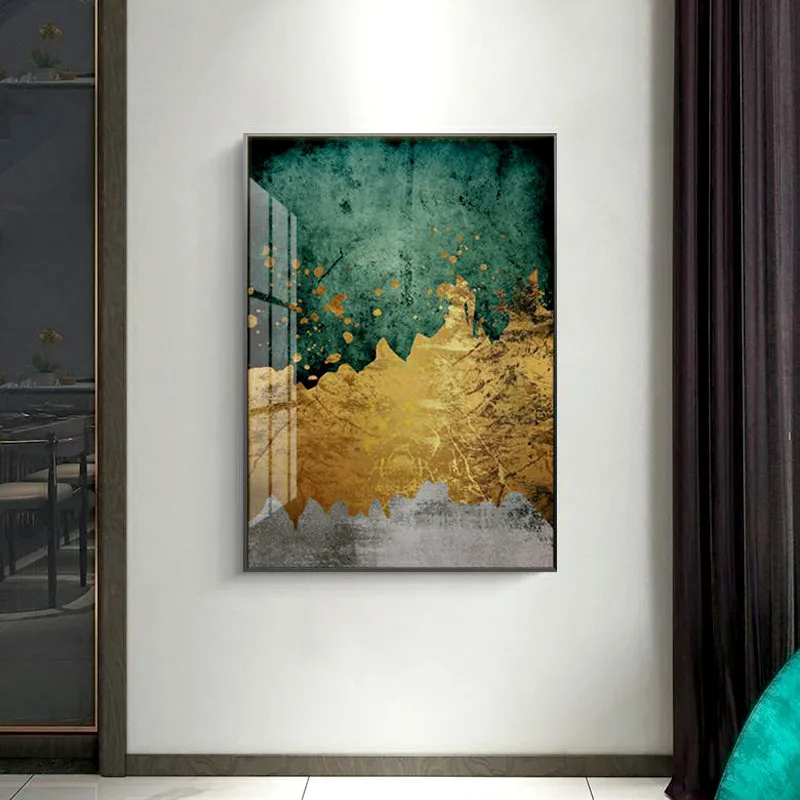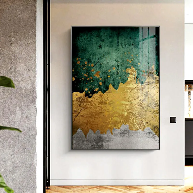 Скандинавская современная абстрактная Золотая фольга, холст, живопись, изумрудно-зеленый плакат, настенное искусство, модульные картины для интерьера, лофт, домашний декор