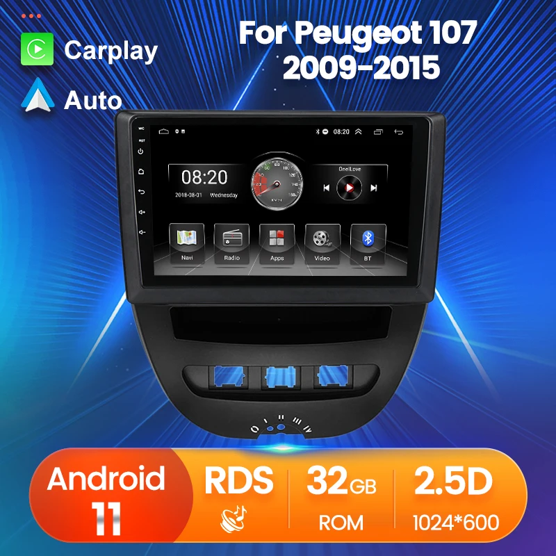 Автомагнитола 2DIN на Android 11 для Peugeot 107 2009-2015 Toyota Aygo Citroen C1 2005-2013 SWC WIFI Carplay 2.5D экран