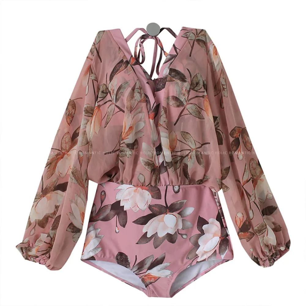 Купальник женский кружевной, однотонный, с длинным рукавом