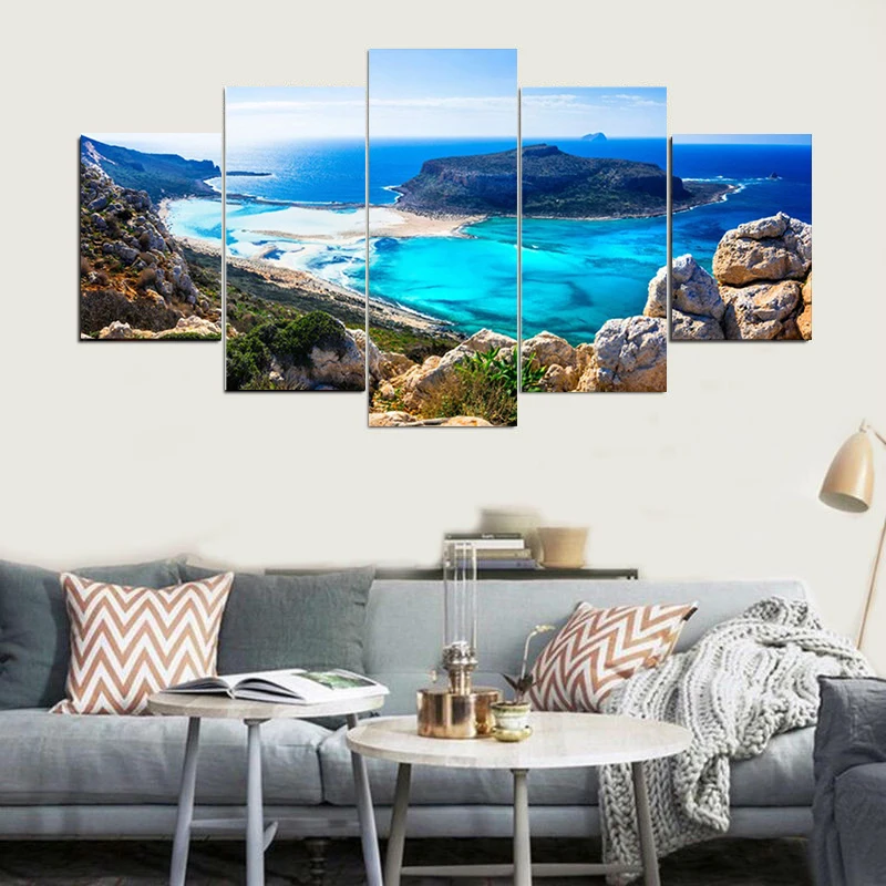 Картина маслом в скандинавском стиле с изображением моря, 5 предметов
