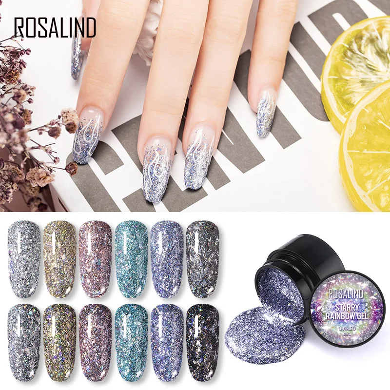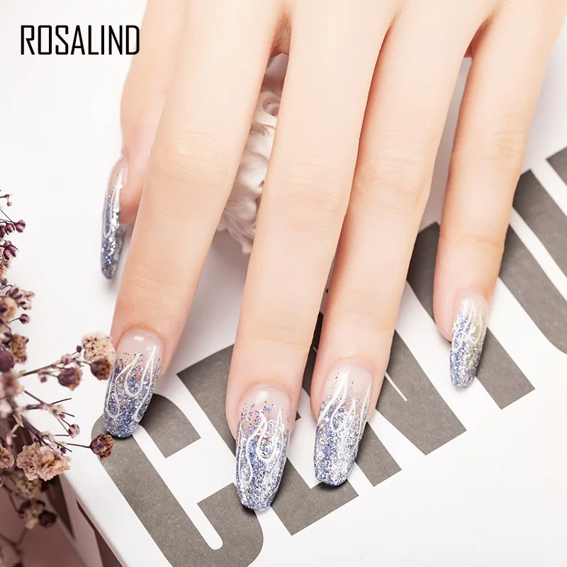 Блестящий Гель-лак для ногтей ROSALIND, 5 мл, удаляемый замачиванием, гибридные лаки для дизайна ногтей, верхнее покрытие с черной росписью, Полупостоянный УФ-гель для маникюра