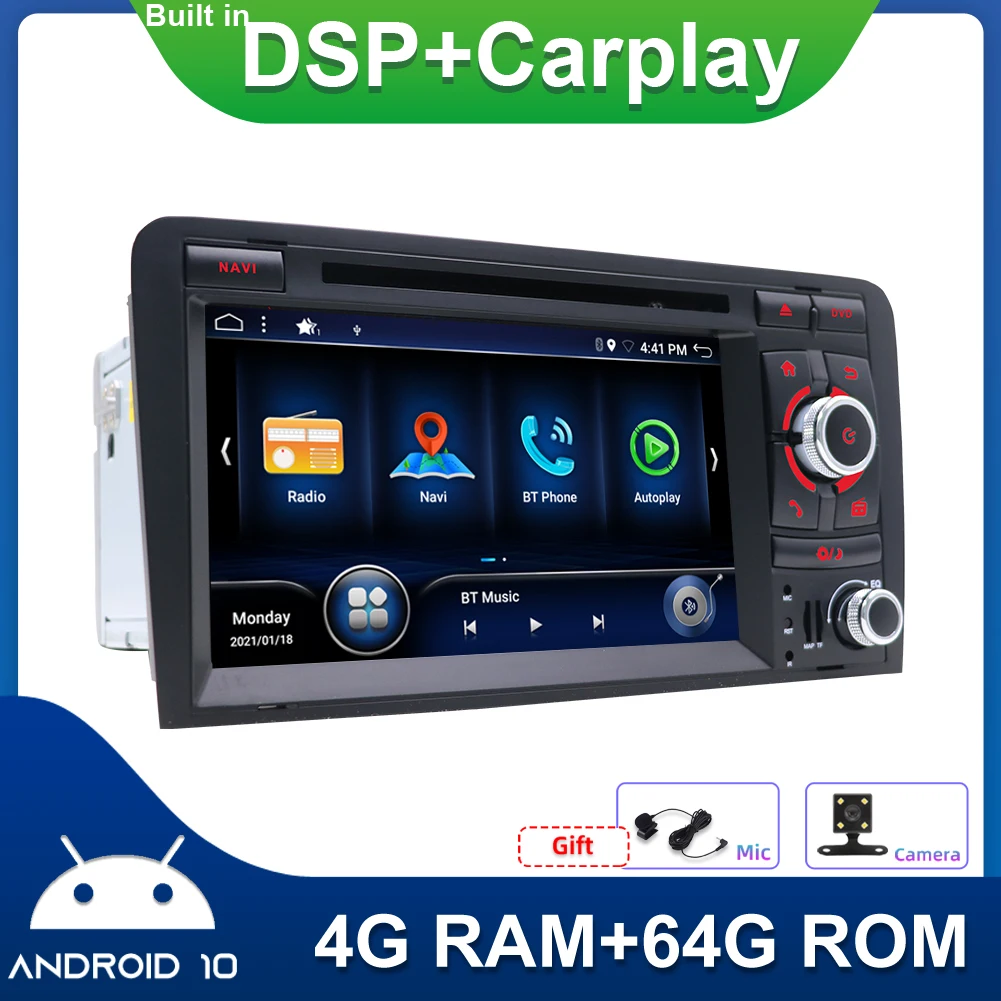 Автомобильный радиоприемник 2 Din Android 10,0 для Audi A3 встроенный Carplay DSP RDS SWC BT GPS NAVI 4G + 64G интеллектуальная автомобильная система