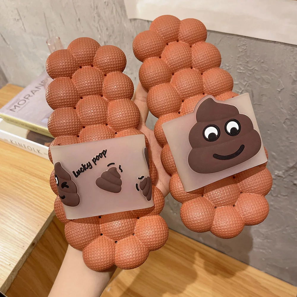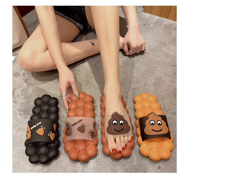 Креативные тапочки-какашки, женские летние, 2021, модные домашние Тапочки для ванной, шлепанцы для женщин, обувь для девочек с мультяшным рисунком