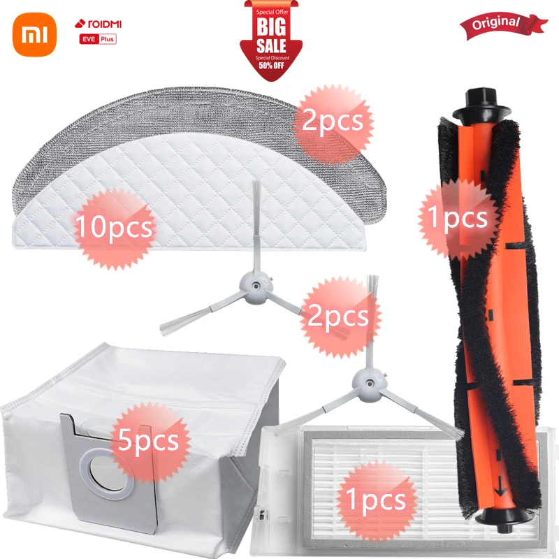 Оригинальные аксессуары для пылесоса ROIDMI EVE Plus, мешки для пыли, тряпки для швабры, щетка с фильтром, боковая щетка, одноразовые швабры