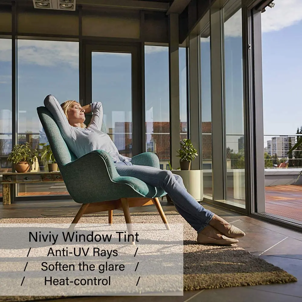 Пленка отвергает около 95% вредных ультрафиолетовых лучей, защищает вашу кожу от прямых солнечных лучей. Также помогает предотвратить выцветание мебели.