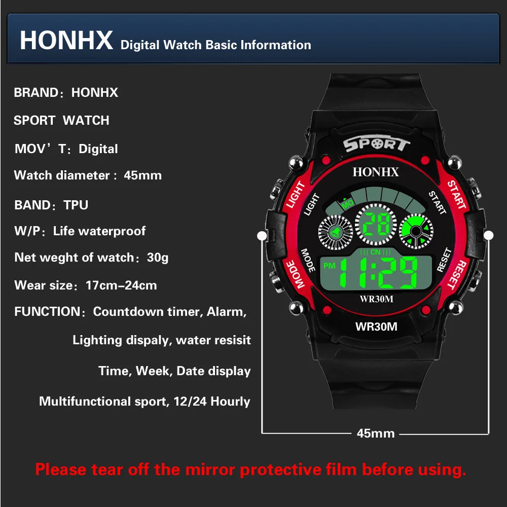 Мужские электронные спасательные водонепроницаемые цифровые светодиодные Многофункциональные спортивные часы для мальчиков детские часы с будильником и датой подарок