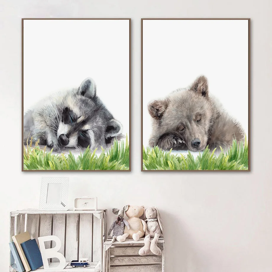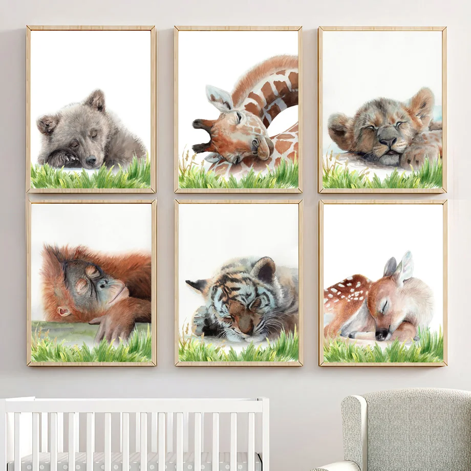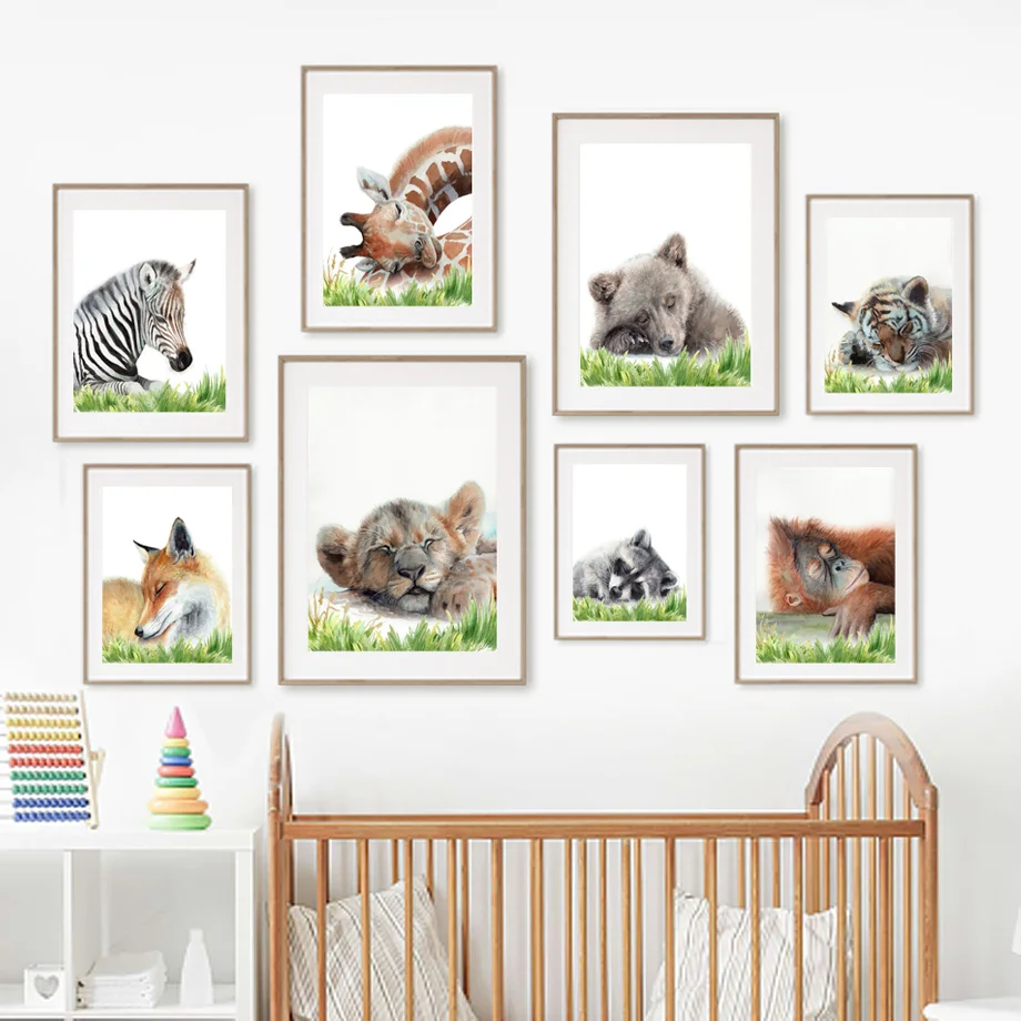 Детский Тигр слон жираф енот ягненок Лев Кролик плакаты и принты На...