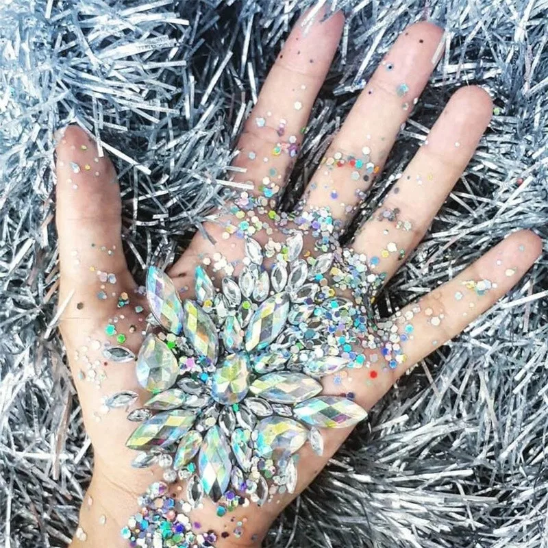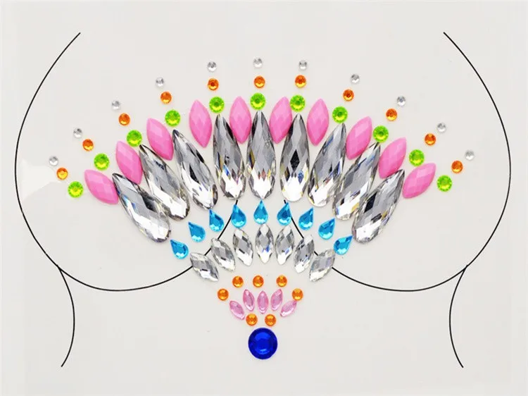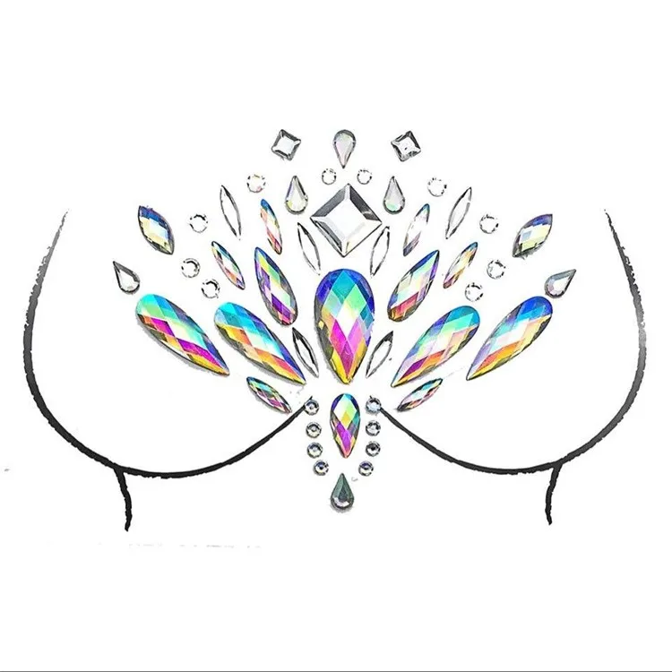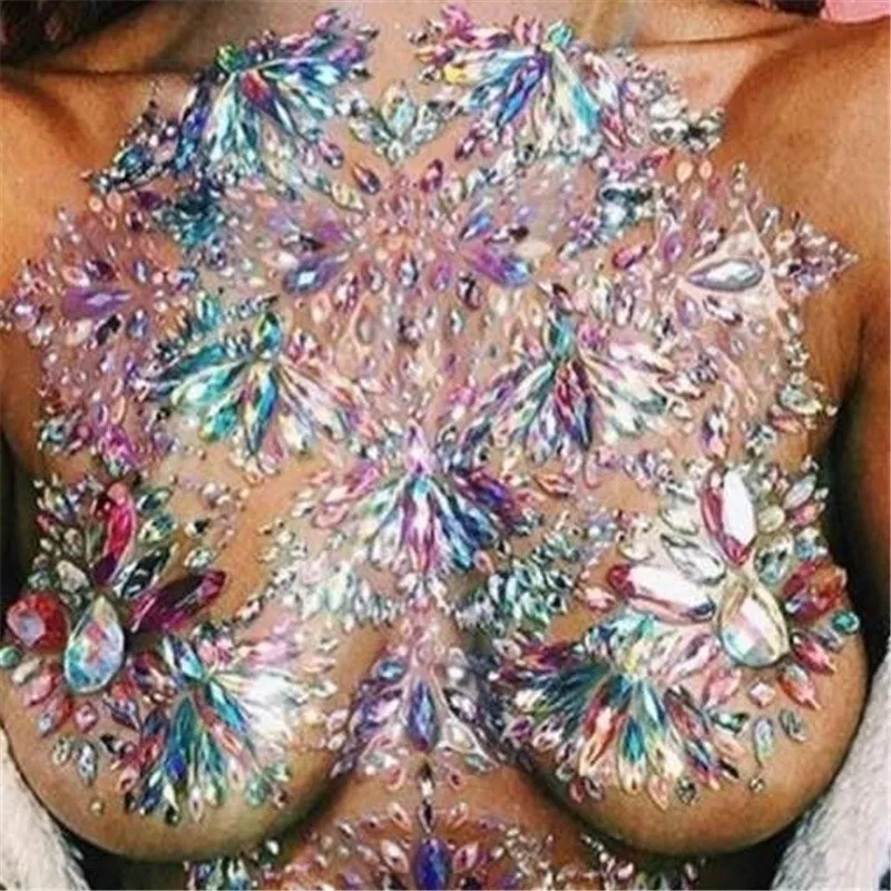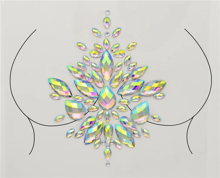 Временные женские Искусственные татуировки наклейки на грудь драгоценности кристалл украшение для лица Алмаз Акриловые стразы наклейки на лицо