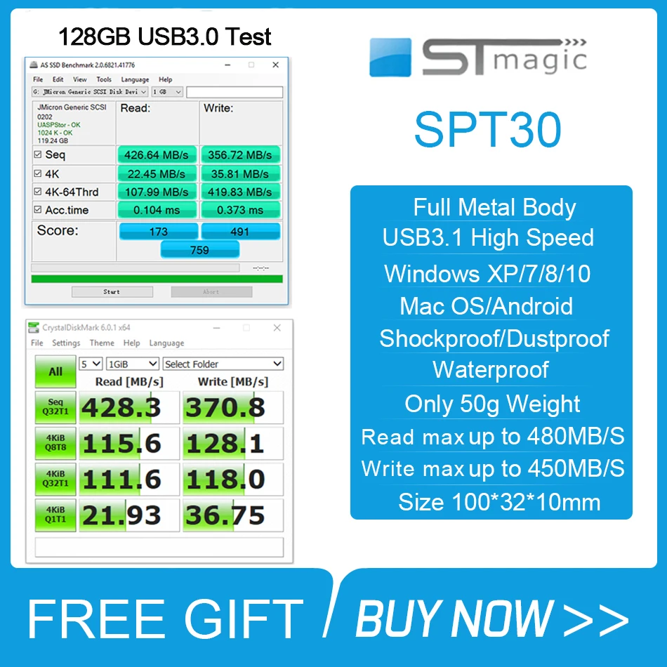 Металлический портативный SSD-накопитель Stmagic Spt30 USB 3,1 128 ...
