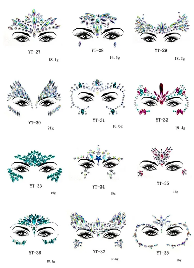 Праздничные драгоценные камни стразы для лица, временная татуировка...