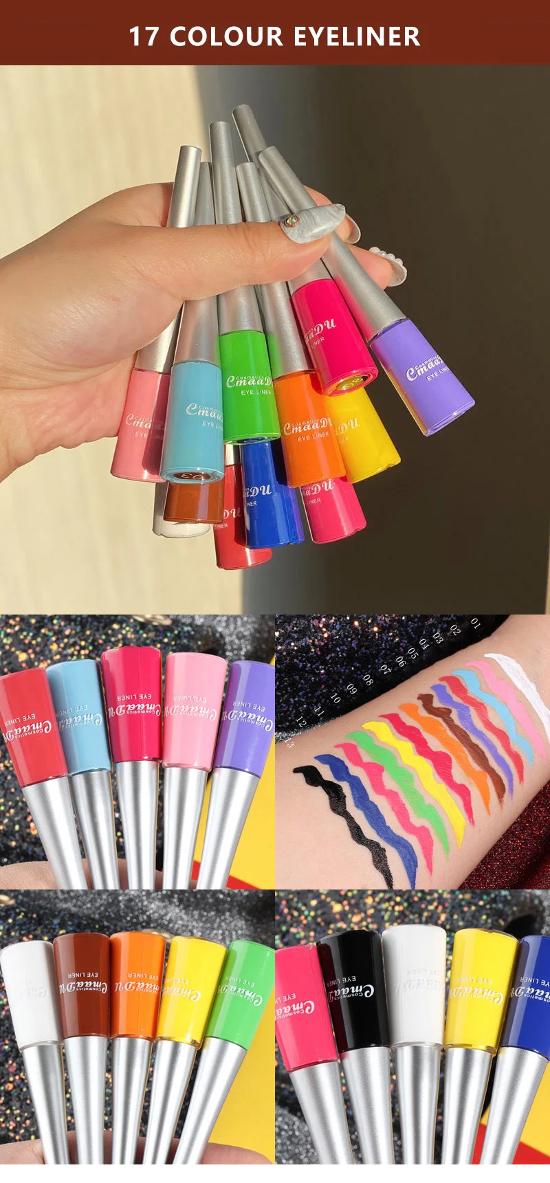 17 цветов неоновый жидкий карандаш для глаз водостойкий цветной синий зеленый желтый белый карандаш для подводки глаз Женская Косметика для макияжа глаз