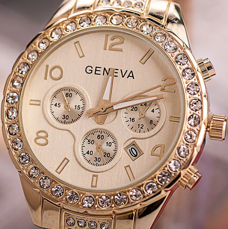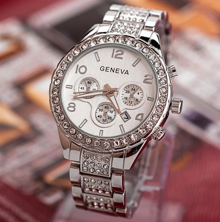 Женские часы Geneva с браслетом, Роскошные наручные часы из нержаве...