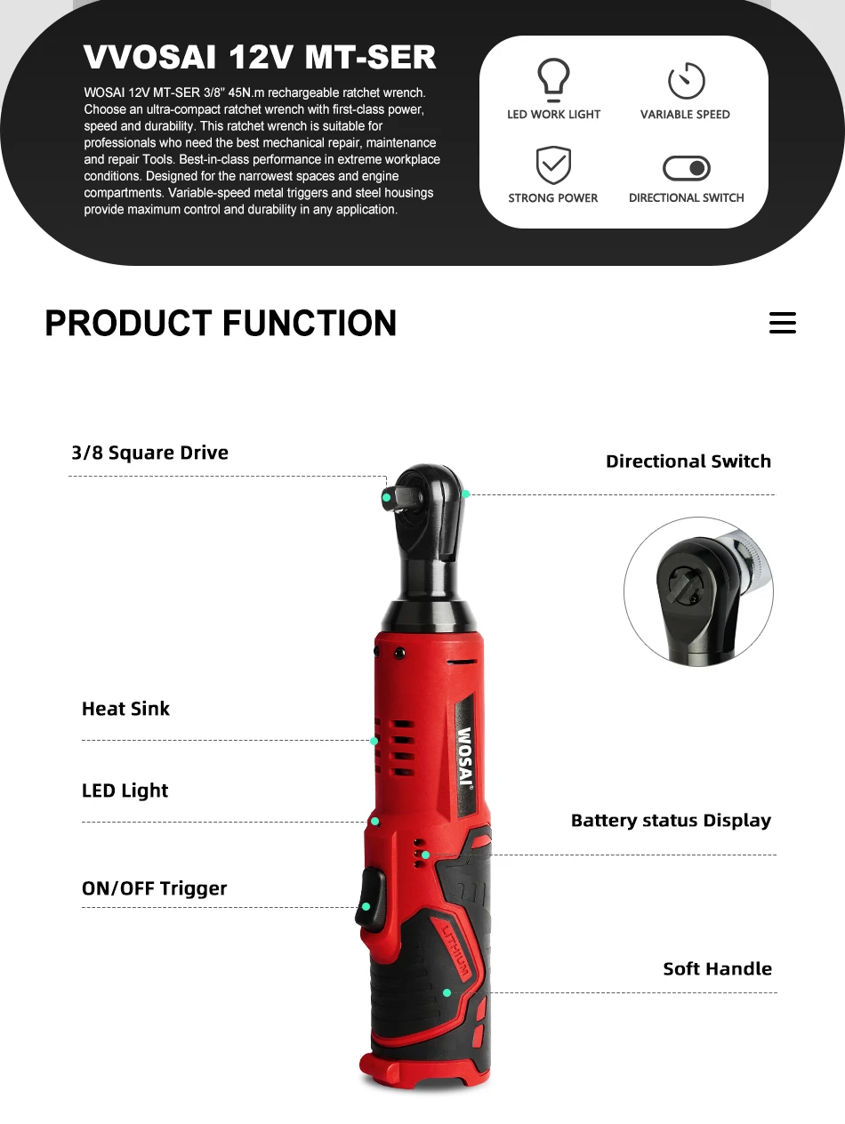 Электрический гаечный ключ VVOSAI, 38 дюйма, 12 В, перезаряжаемый, 45н-М