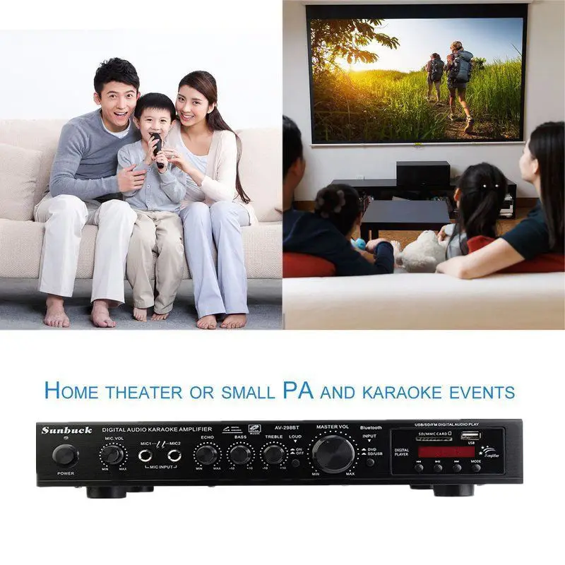 Цифровой усилитель Sunbuck с поддержсветодиодный Bluetooth, стерео, LED, USB, AV, мощный объемный Аудиопроцессор с высоким разрешением 298BT