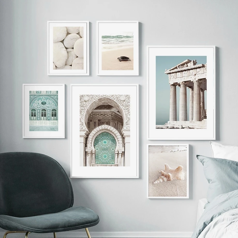 Nordic Плакаты и печать, Картина Настенная море пляж марокканский раковины двери булыжник настенные Арт холст картины Гостиная украшения