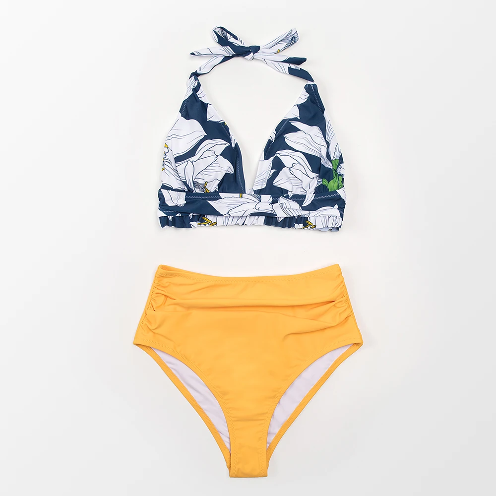 CUPSHE, желтый, Цветочный, высокая талия, бикини, наборы, купальник...