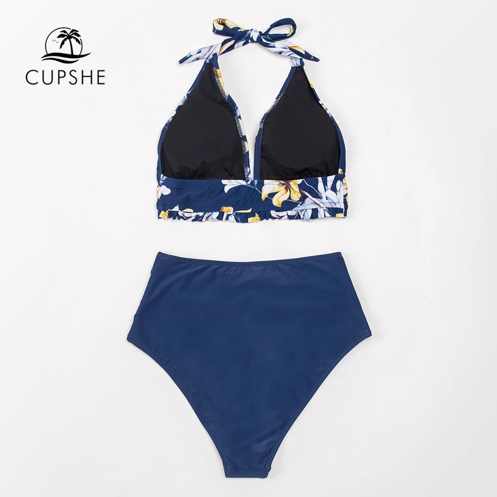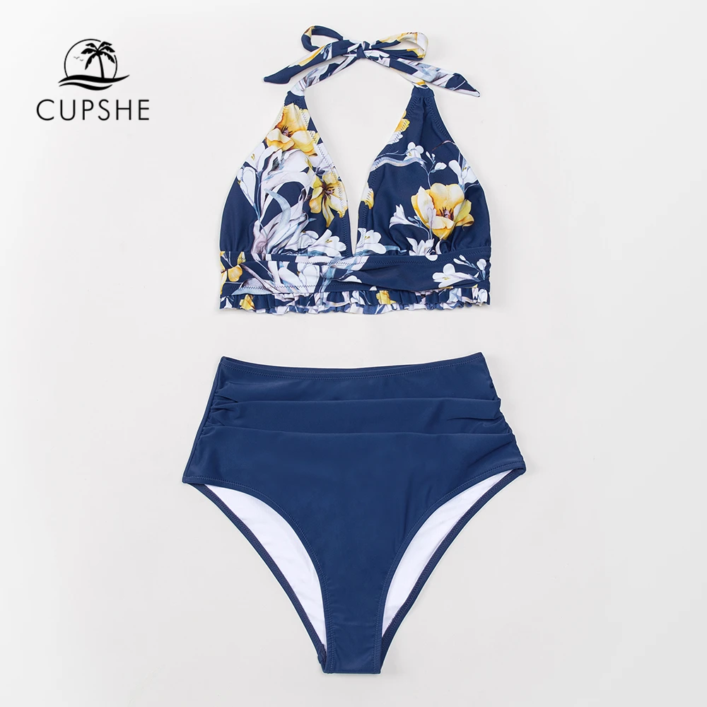CUPSHE темно-синий цветочный глубокий v-образный Вырез Холтер Цельн...
