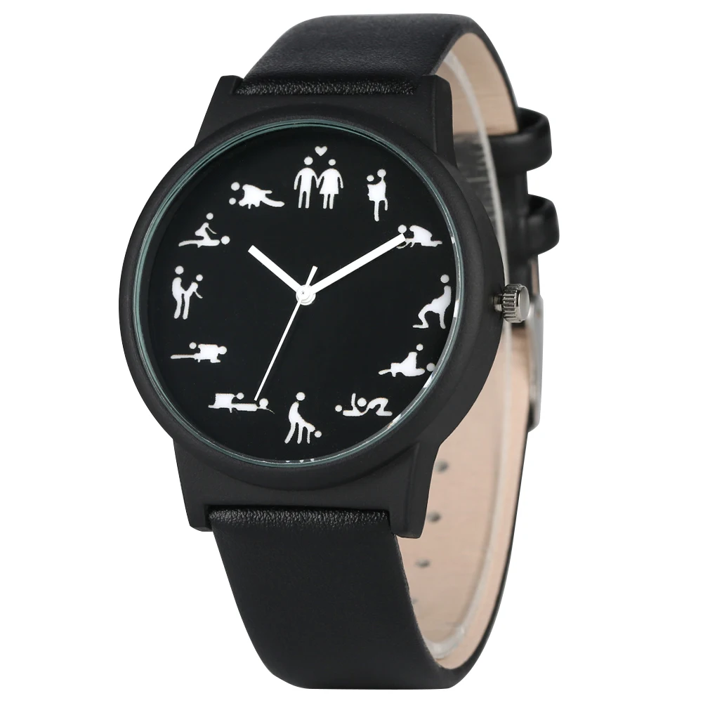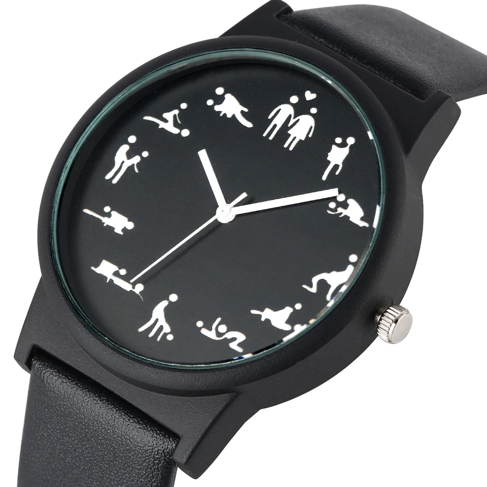 Классические черные креативные забавные Мужские кварцевые часы с ремешком, Модные индивидуальные мужские удобные часы с кожаным ремешком