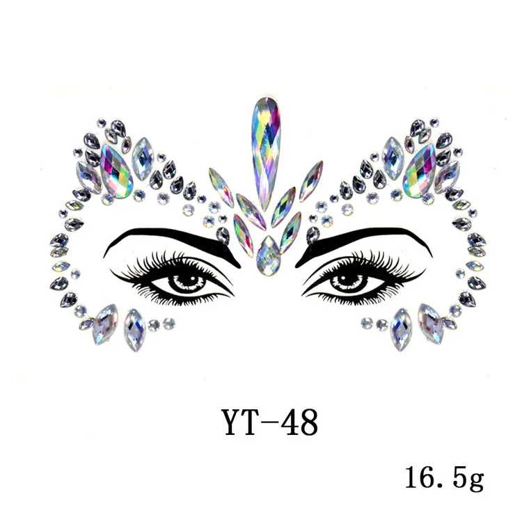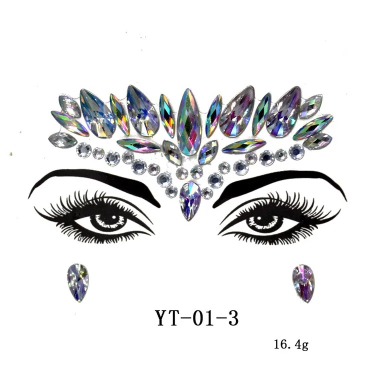 Маскарадная блестящая искусственная 3d-наклейка с кристаллами, модная блестящая акриловая наклейка для музыкального фестиваля, стикер для Временной Татуировки
