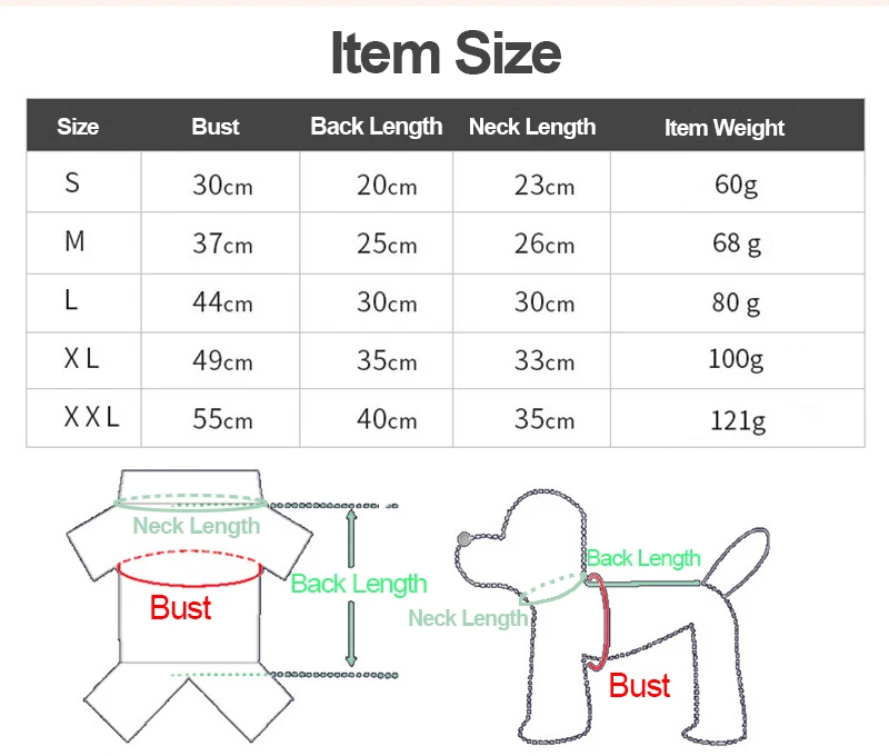 Замечательный дождевик! На мою собаку весом 4.8 кг спина: 36см, грудь : 40см, шея 28 см подошёл идеально XL !,Единственное, что приходится рукава подкатывать, но это нормально. Ещё у курточки нет сетчатой подкладки - это огромный плюс, потому что шерсть у моей собаки длинная и с этой курткой без подкладки она не сильно скатывается в колтуны. Дождь и ветер выдерживает отлично, как раз испробовали её в горах, 5 дней там постоянно шёл дождь, и дождевик не промокал! Рекомендую.