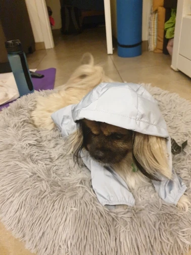 Качество хорошее, из-за меха чуть маловат. Смешно обтягивает и показывает реальный размер собаки. В дождевике выглядит как лев, тело обтянуто, а голова пушистая. Движения не сковывает, пёс активно бегает. Грязь и воду отталкивает, под дождевиком шерсть сухая. Сама ткань сохнет быстро. Жилетка теплая без запаха, швы ровные, качество хорошее. Цвет как не фото. Всем довольны