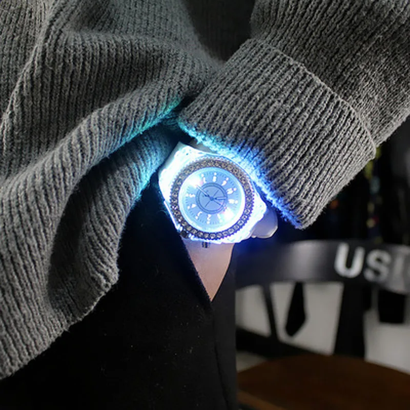 Ночной люминесцентный часы мужчин и женщин стразами LED Flash кремн...