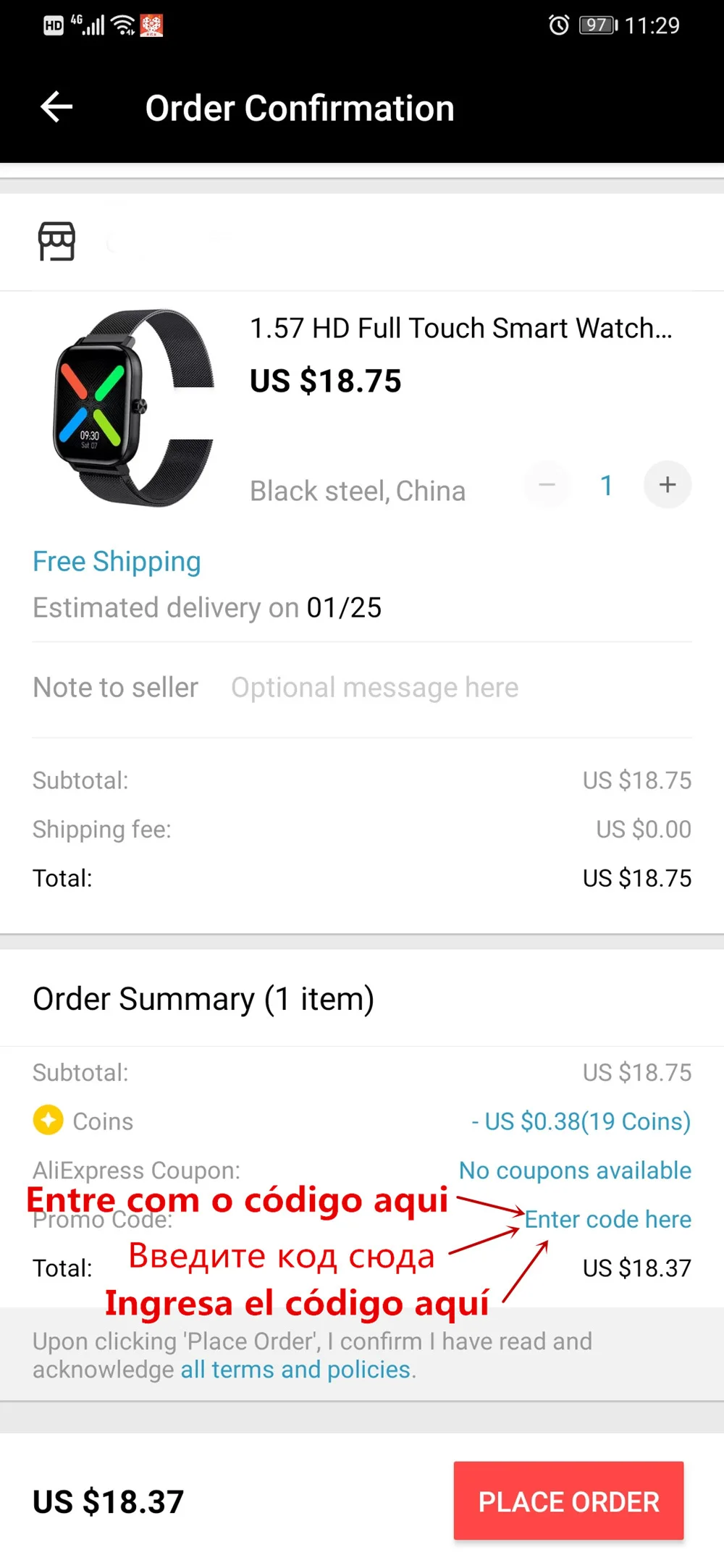 Пожалуйста, следуйте методу, показанному на картинке, чтобы использовать код купона (купон имеет только 99 шт.), вы сэкономите больше денег!