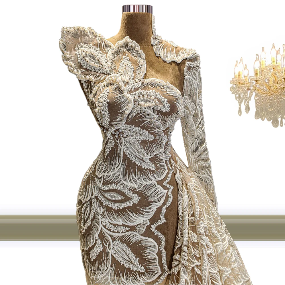 Floria Свадебная вечеринка платье жемчуг Длинные рукава Свадебное п...