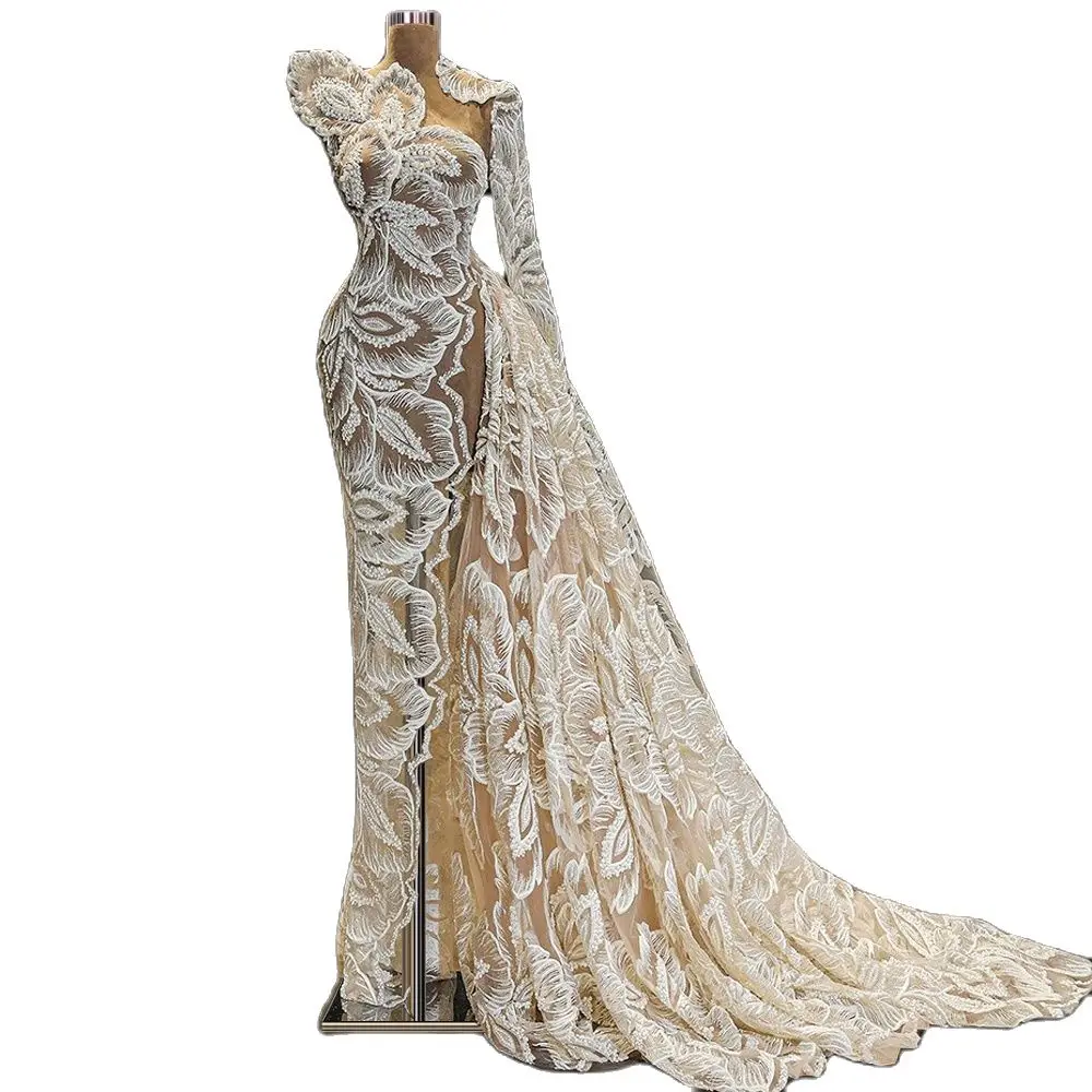 2022 Роскошные свадебные платья с бисером и длинным рукавом с длинн...