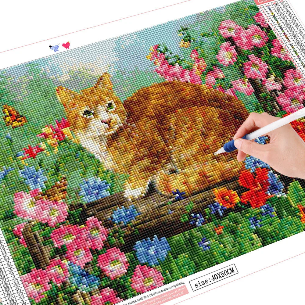 Алмазная 5d картина HUACAN с кошкой, мозаика сделай сам с цветами, полноразмерная вышивка, животное, домашний декор, подарок ручной работы