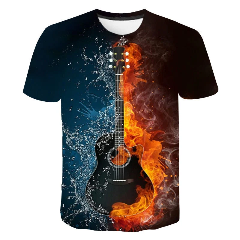 Футболка Мужскаяженская с 3D-принтом гитары, модная уличная одежда ...