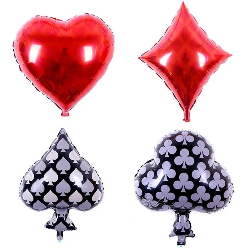 Клубы, бриллианты, пики, сердца, фольгированные воздушные шары, кар...