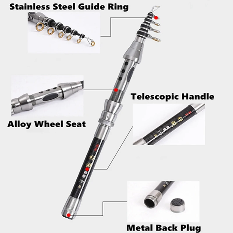 Телескопическая удочка из высокоуглеродного волокна, приманка для ловли карпа, 1,5 м, 1,8 м, 2,1 м, 2,4 м