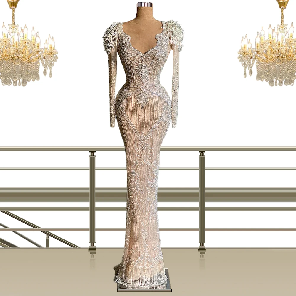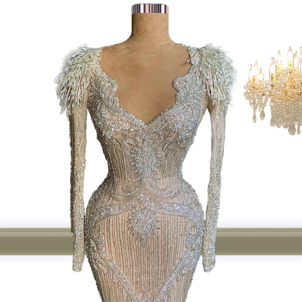 2022 Роскошные свадебные платья с бисером и длинным рукавом с длинн...