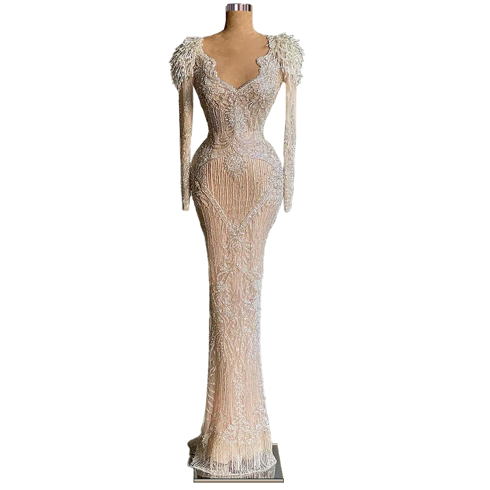 Floria Свадебная вечеринка платье жемчуг Длинные рукава Свадебное п...