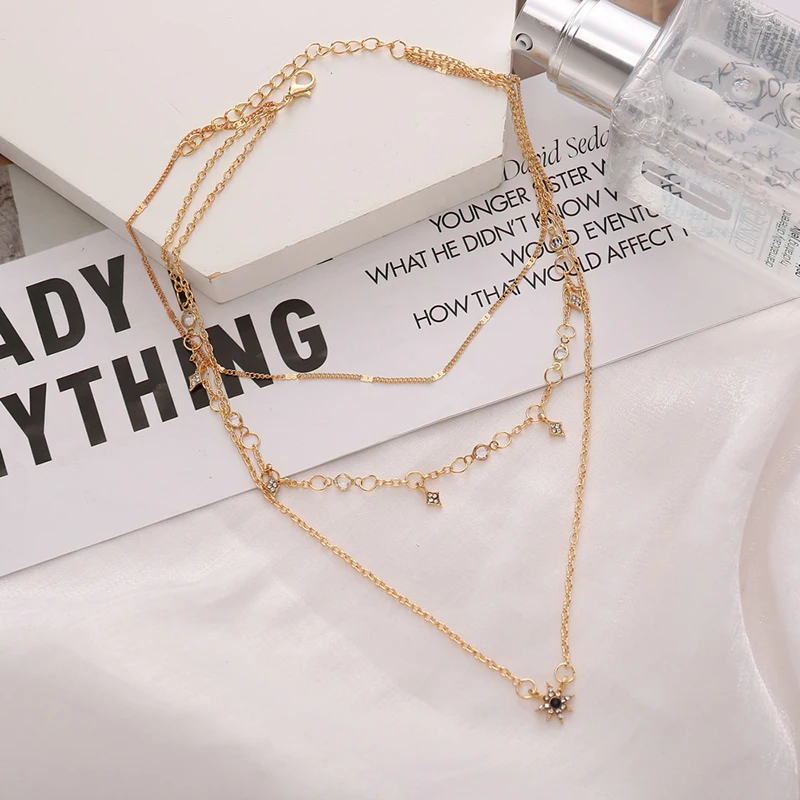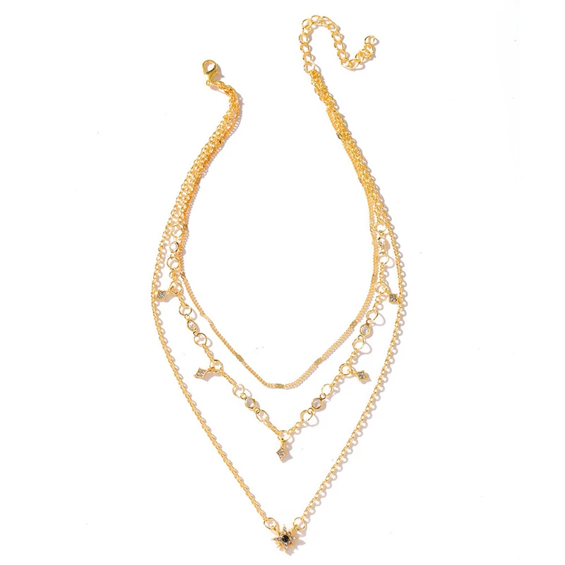 Цепочка цепочка с подвеской в виде звезды женская, многослойная бижутерия в стиле бохо, Подарочный аксессуар на шею
