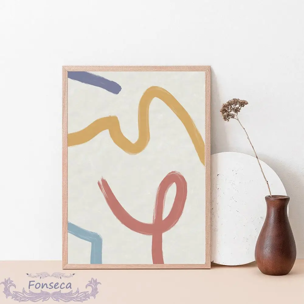 Яркая Абстрактная живопись сталкивается с проведенными линиями художественный Принт плакат минималистский Скандинавская Картина на холсте на стену для Декор в гостиную