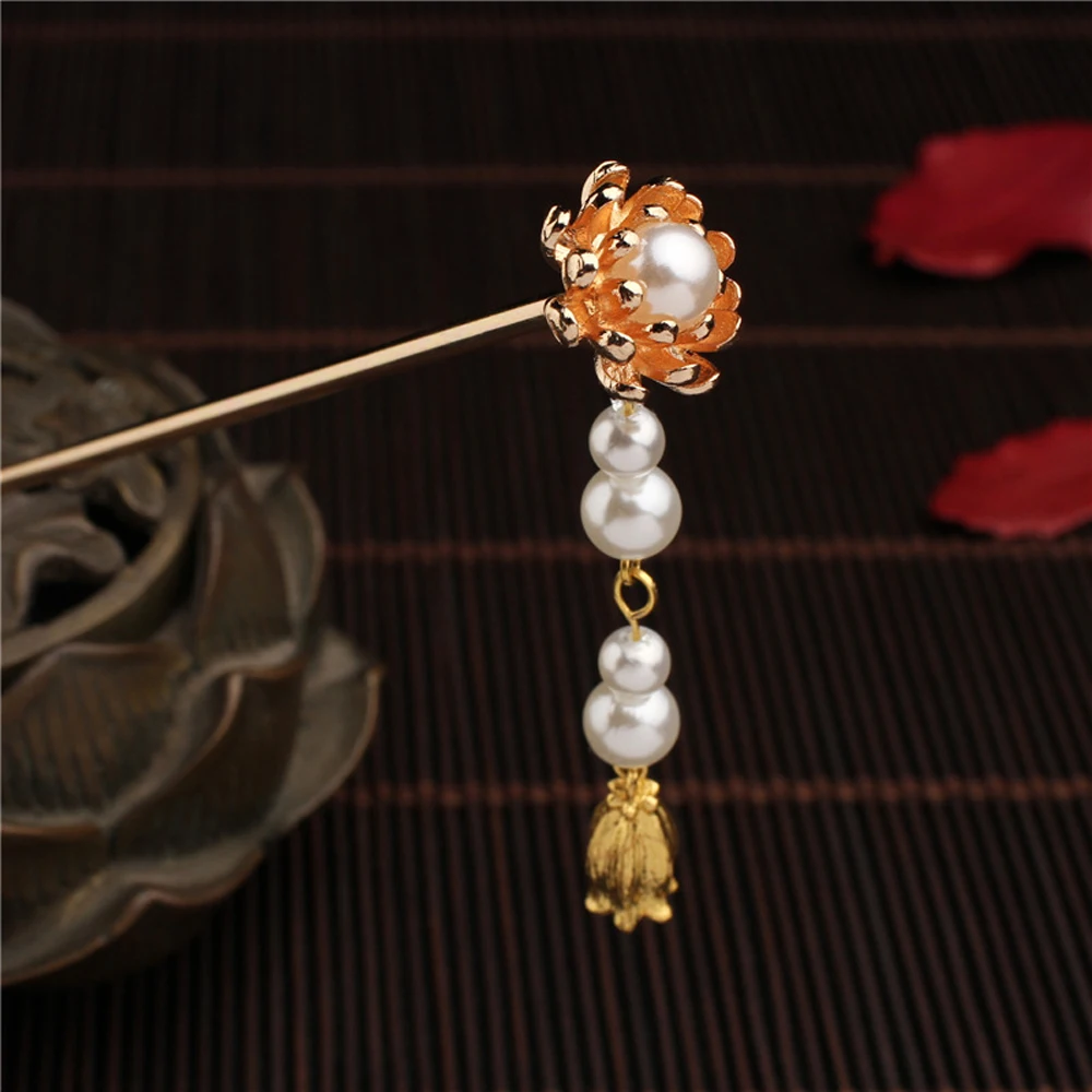 Палочки для волос в китайском стиле, женские палочки для еды с подвеской в виде цветка, жемчужинами, кисточками и кристаллами, свадебные и вечерние украшения для волос