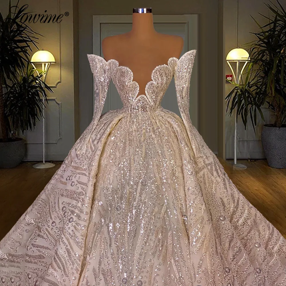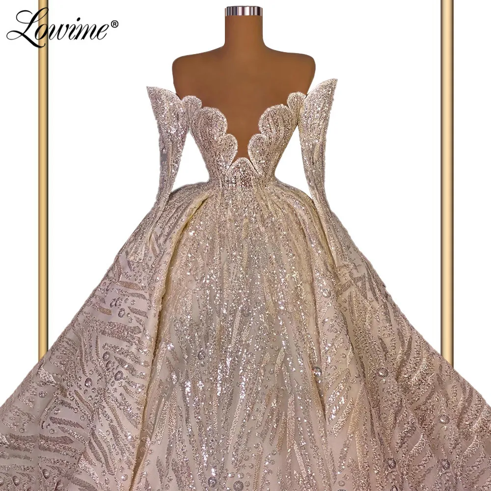 Арабское длинное свадебное платье с открытыми плечами и блестками, 2021, роскошные женские свадебные платья Дубая, Ближнего Востока, ТРАПЕЦИЕВИДНОЕ платье невесты