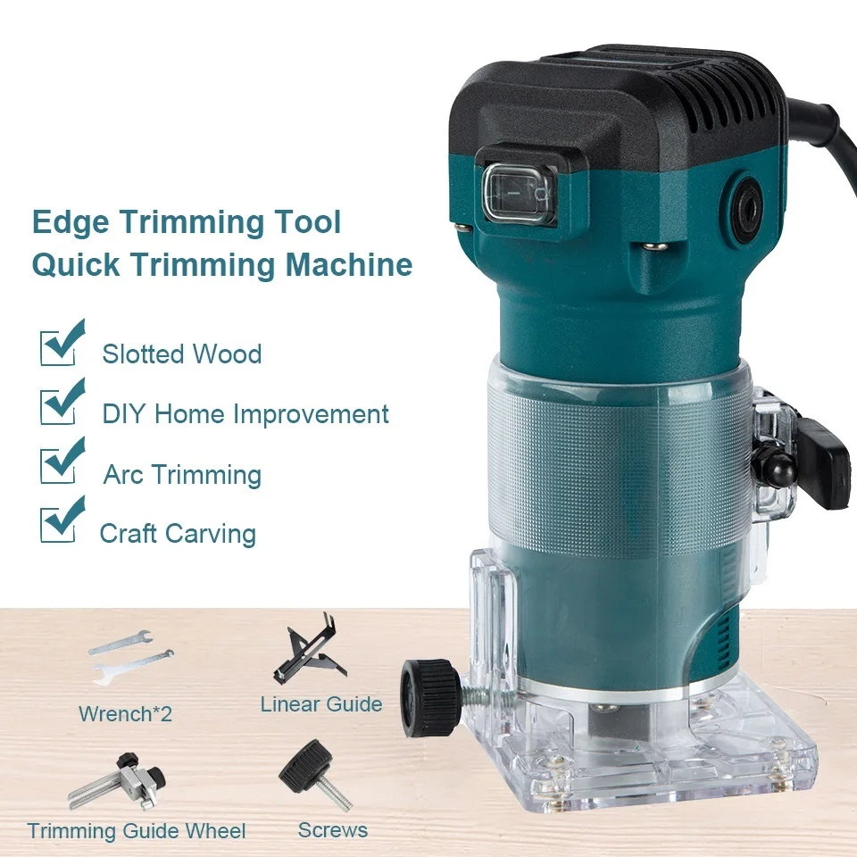 Описание продукта:Номинальное напряжение: 220 ВНоминальная входная мощность: 580 ВтДиаметр патрона: 6 мм, 6,35 мм и 8 ммСкорость холостого хода: 32600 об/минТип штепсельной вилки: 220 В (штепсельная Вилка европейского стандарта)Частота: 50 ГцМатериал: ABS пластик, металлПодходит для: резки дерева, обрезкиДлина шнура питания: около 210 смПреимущества: 100% отличное качествоОсобенности:-Встроенный мощный медный мотор 580 Вт, долговечный, эффективный и с высокой термостойкостью-Компактный размер и легкий вес, легко носить с собой повсюду-Премиальный алюминиевый материал корпуса, прочный, водонепроницаемый и пылезащитный-Прозрачное основание, может четко видеть работу для повышения точности; Стальная цанга, плотно удерживает фрезу; Удлинить шнур питания, сделать работу более удобной; Креативный рычажный переключательУведомления:1. Перед эксплуатацией убедитесь, что машина выключена2. Пожалуйста, будьте осторожны при использовании машины, Носите защитные очки и не допускайте разлетания пыли. Храните его вдали от детей3. Регулярно проверяйте и заменяйте угольную щетку после ее использования, следует выбрать такую же угольную щетку для заменыПосылка входит:Машина отделки дерева-1 шт.1x6 мм патронПатрон 1x6,5 ммПатрон 1x8 мм1 x линейная направляющая1 x направляющее колесо для обрезки2 гаечных ключа1 Набор 15 шт фрезы