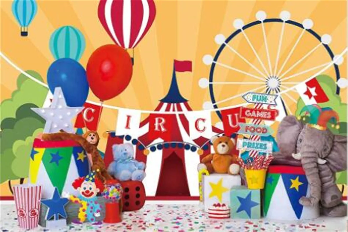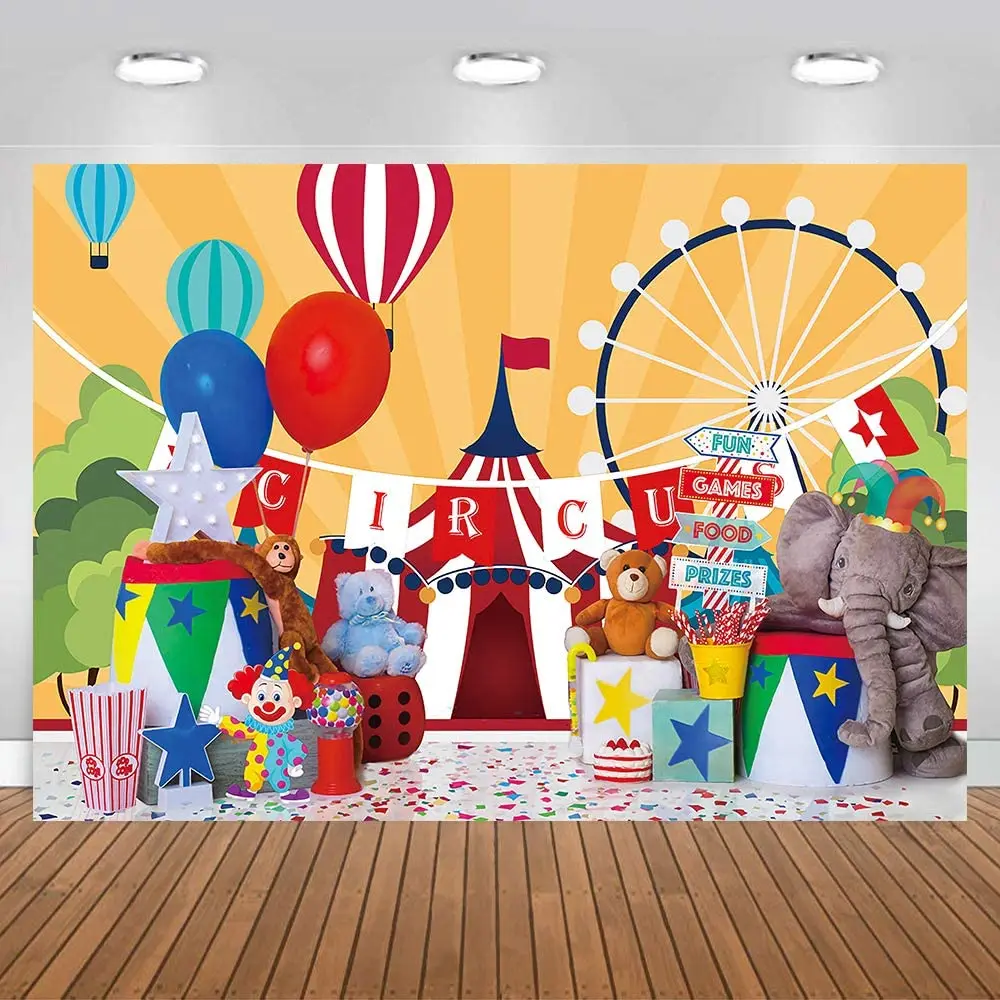 Большой цирк фон карнавал красная палатка детский душ День Рождения фотография фон мультфильм занавеска звезды воздушный шар баннер